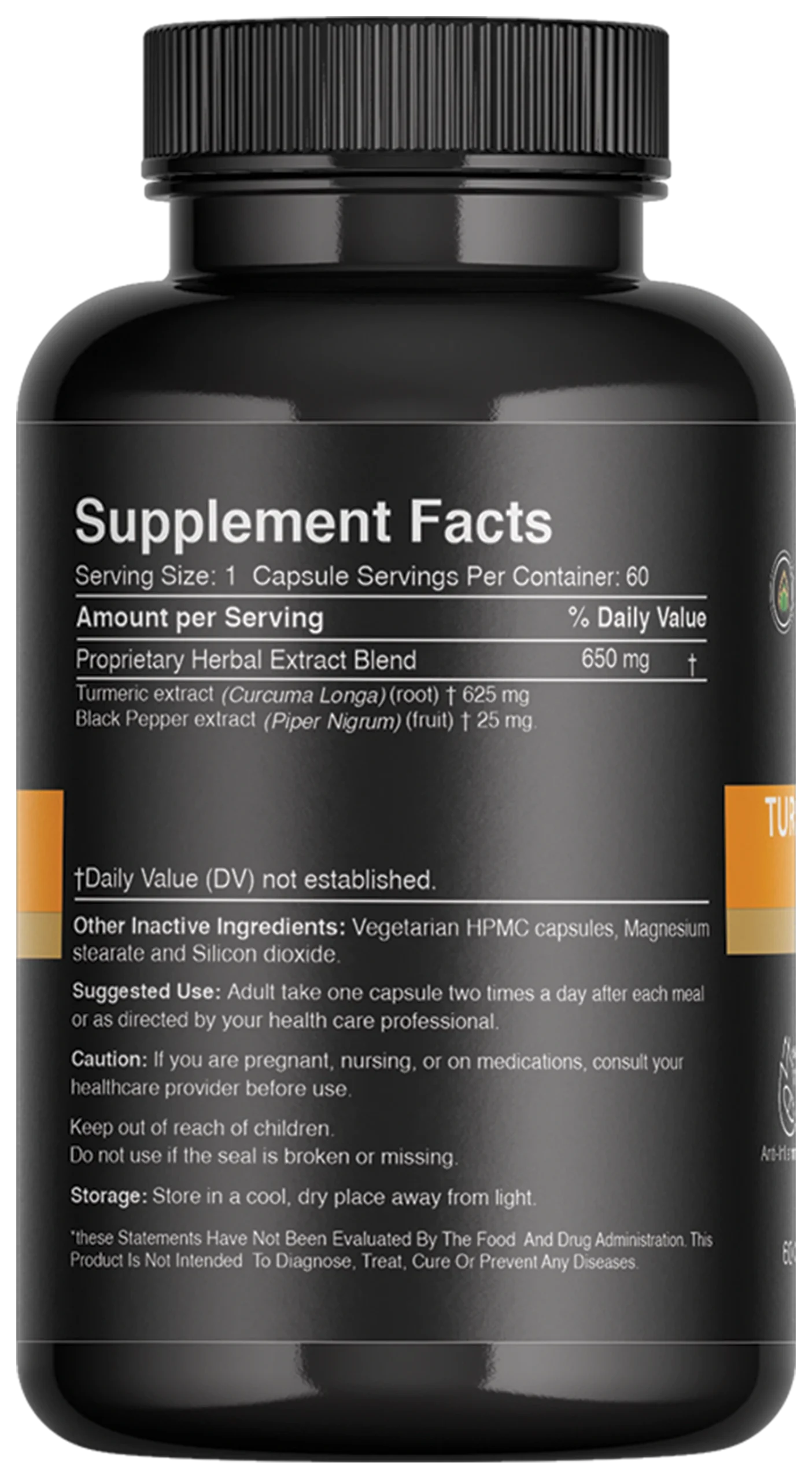- Proven benefits with high-strength turmeric curcumin (7:1) and black pepper, which may increase absorption by up to 2000%.